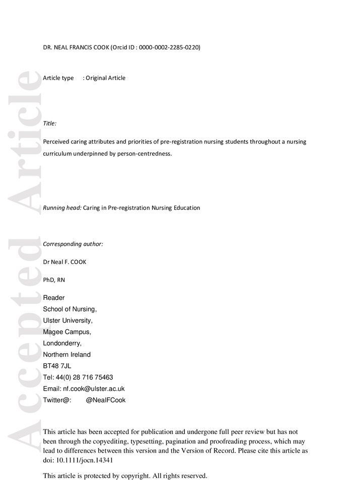 Item Developing philosophical and pedagogical principles for a pan-European person-centred curriculum framework(Foundation of Nursing Studies, 2020-09-30) Dickson, Caroline; van Lieshout, Famke; Kmetec, Sergej; McCormack, Brendan; Skovdahl, Kirsti; Phelan, Amanda; Cook, Neal F.; Cardiff, Shaun; Brown, Donna; Lorber, Mateja; Magowan, Ruth; McCance, Tanya; Dewing, Jan; Štiglic, GregorBackground: In the associated article in this special issue of the International Practice Development Journal, Phelan et al. (2020) offer an analysis of the global positioning of person-centredness from a strategic policy perspective. This second article, an international person-centred education curriculum development initiative, builds on that foundational work. It outlines the systematic, rigorous processes adopted by academics from five European countries to analyse stakeholder data, theoretically frame the data, and thereby identify philosophical and pedagogical principles to inform the development of person-centred curriculum frameworks.Item Perceived caring attributes and priorities of pre-registration nursing students throughout a nursing curriculum underpinned by person-centredness(Wiley, 2018-03-08) Cook, Neal F.; McCance, Tanya; McCormack, Brendan; Barr, Owen; Slater, PaulAim This paper explores pre-registration nursing students' caring attributes development through a person-centred focused curriculum.Item Review of developments in person-centred healthcare(Foundation of Nursing Studies, 2020-09-30) Phelan, Amanda; McCormack, Brendan; Dewing, Jan; Brown, Donna; Cardiff, Shaun; Cook, Neal F.; Dickson, Caroline; Kmetec, Sergej; Lorber, Mateja; Magowan, Ruth; McCance, Tanya; Skovdahl, Kirsti; Štiglic, Gregor; van Lieshout, FamkeIn recent years, there has been a shift in orientation towards person-centredness as part of a global move towards humanising and centralising the person within healthcare. Person-centredness, underpinned by robust philosophical and theoretical concepts, has an increasingly solid footprint in policy and practice, but research and education lag behind. This article considers the emergence of person-centredness, including person-centred care, and how it is positioned in healthcare policy around the world, while recognising a dominant philosophical positioning in Western philosophy, concepts and theories. Second, the evolution of person-centred healthcare over the past five years is reviewed. Published evidence of person-centred healthcare developments is drawn on, as well as information gathered from key stakeholders who engaged with the partner organisations in an Erasmus+ project to develop a European person-centred healthcare curriculum framework. Five themes are identified, which underpin the literature and stakeholder perspectives: Policy development for transformation Participatory strategies for public engagement Healthcare integration and coordination strategies Frameworks for practice Process and outcome measurement These themes reflect the World Health Organization’s global perspective on people-centred and integrated healthcare, and give some indication of development priorities as person-centred healthcare systems continue to be developed.